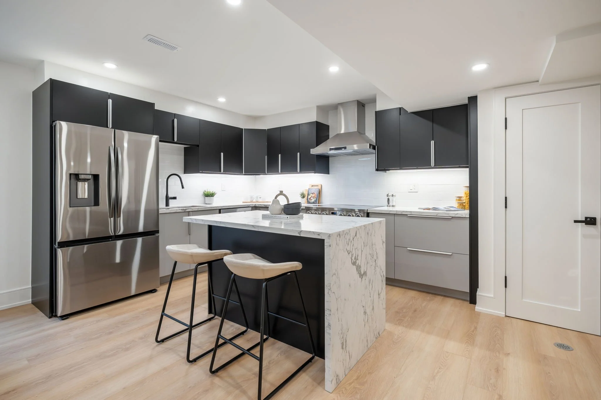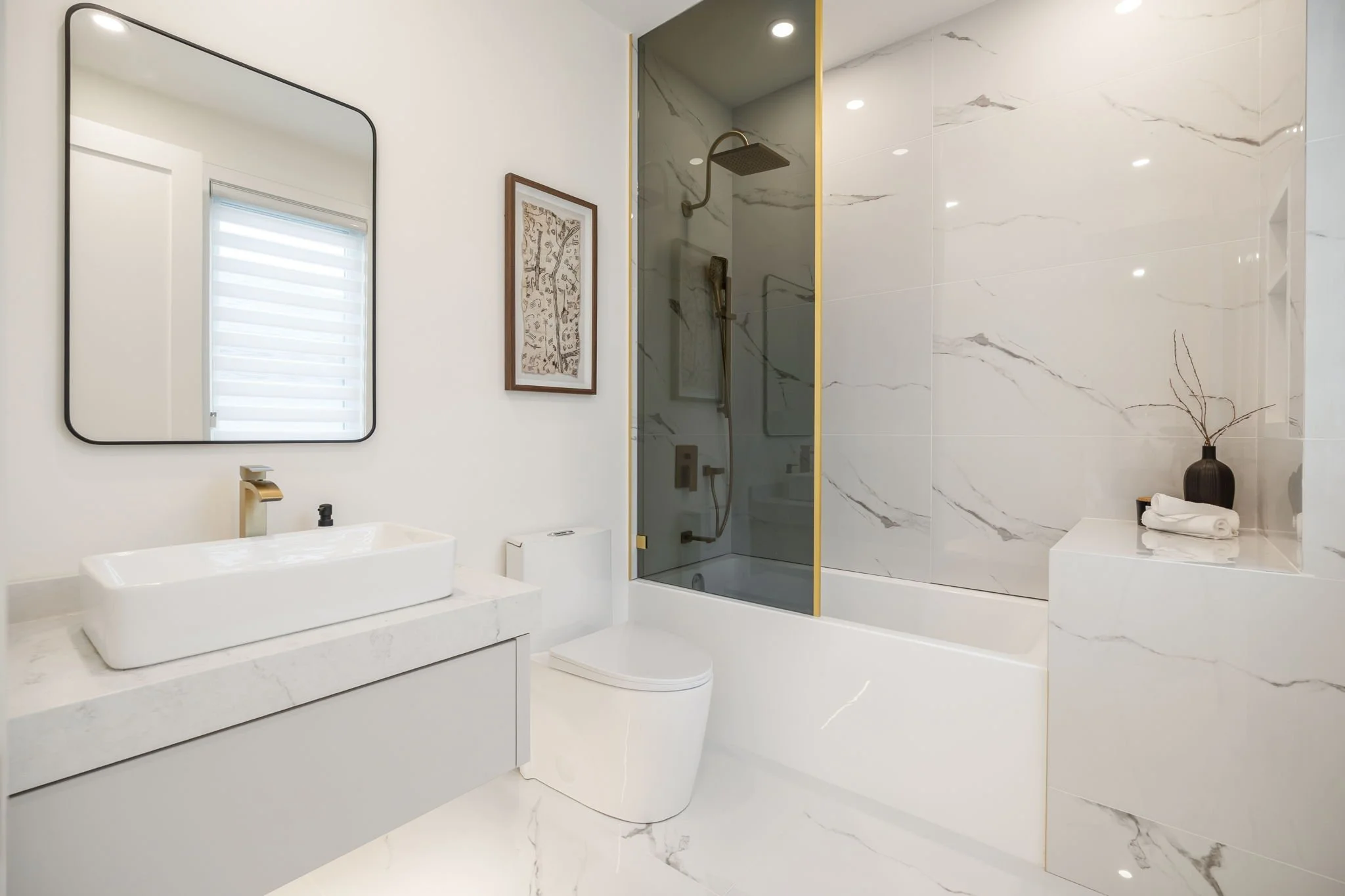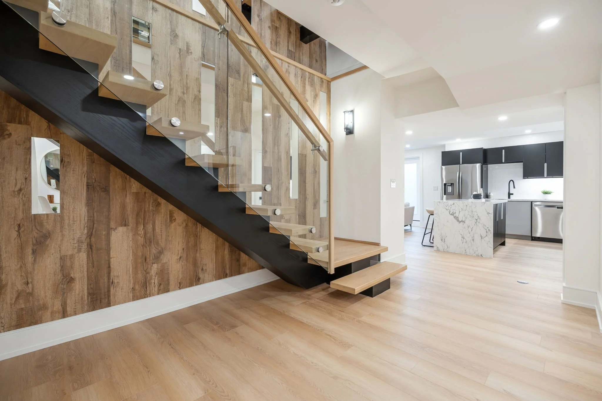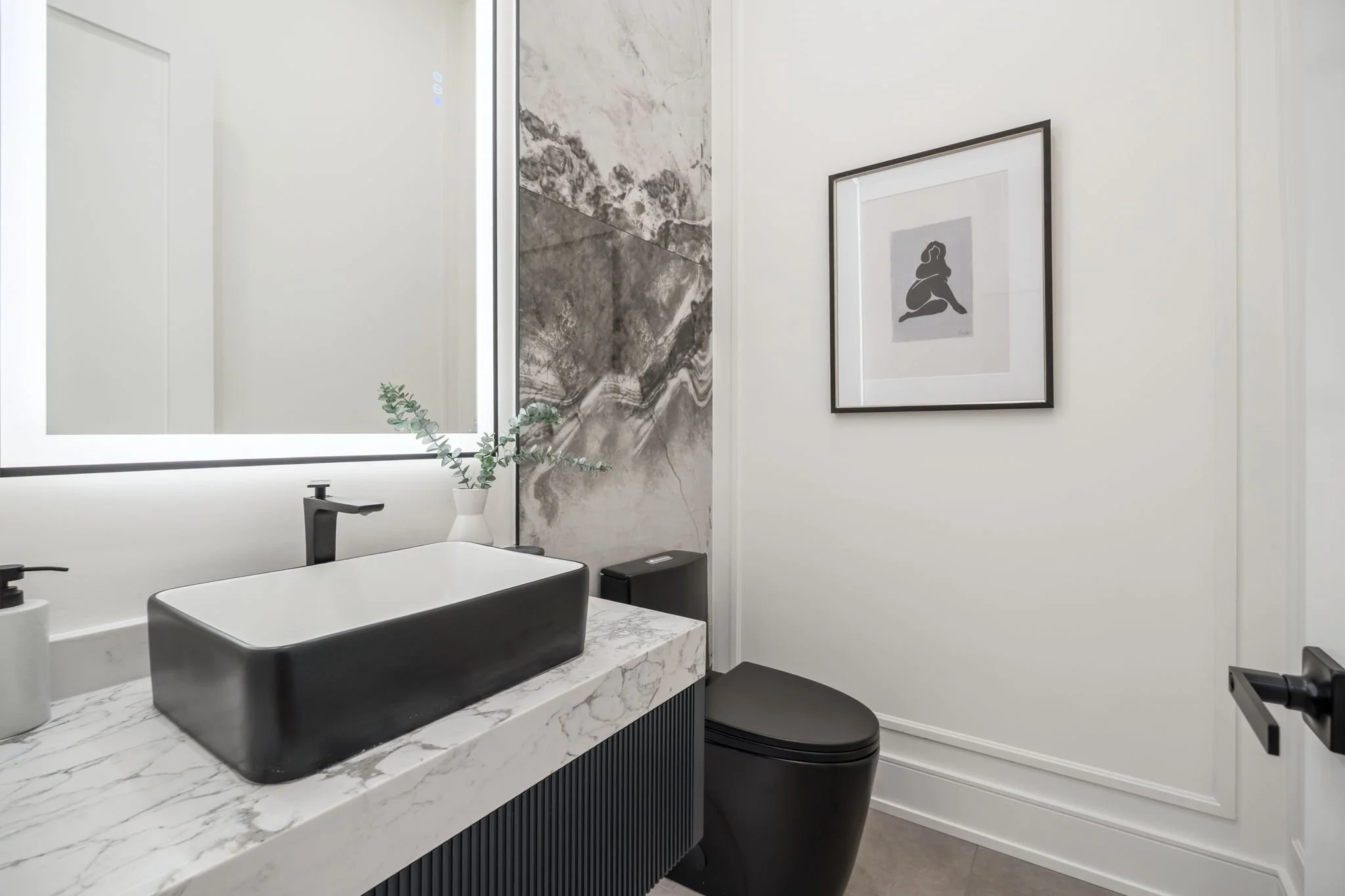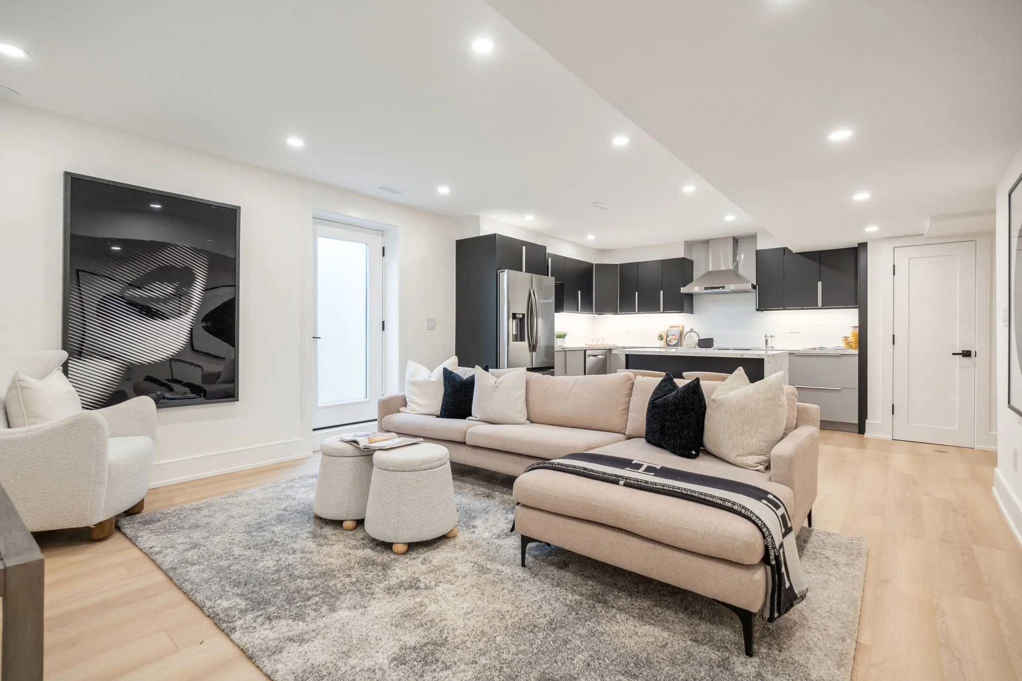This architecturally designed home redefines luxury living, offering an impressive blend of style, comfort, and function. Boasting 9’ ceilings and rich hardwood flooring throughout, this residence features oversized solid-core wood doors, modern baseboards, LED lighting, pot lights, gorgeous slab walls and built-in surround sound for an elevated living experience.